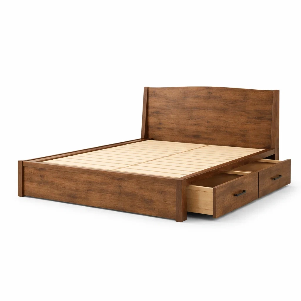 Lit avec rangement en bois massif avec tiroirs de rangement