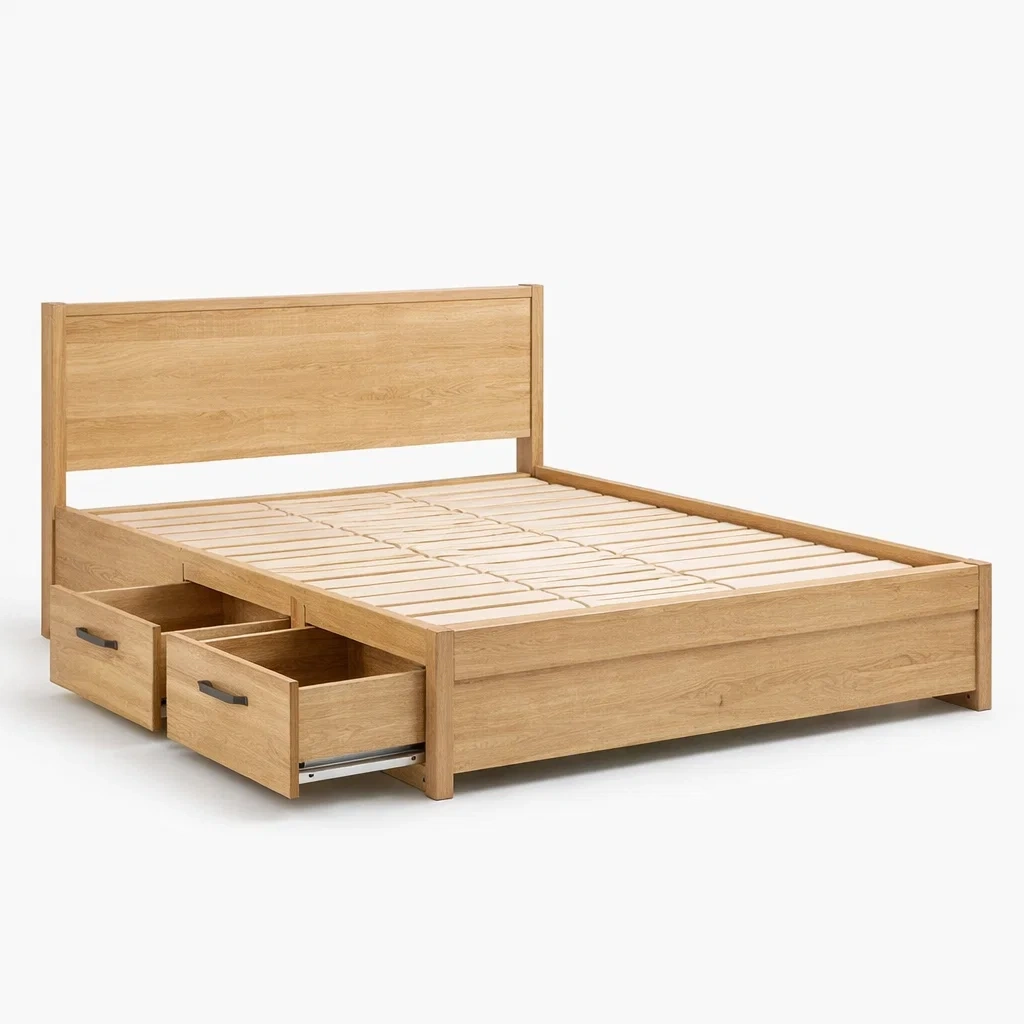 Lit avec rangement double en bois avec tiroirs chêne