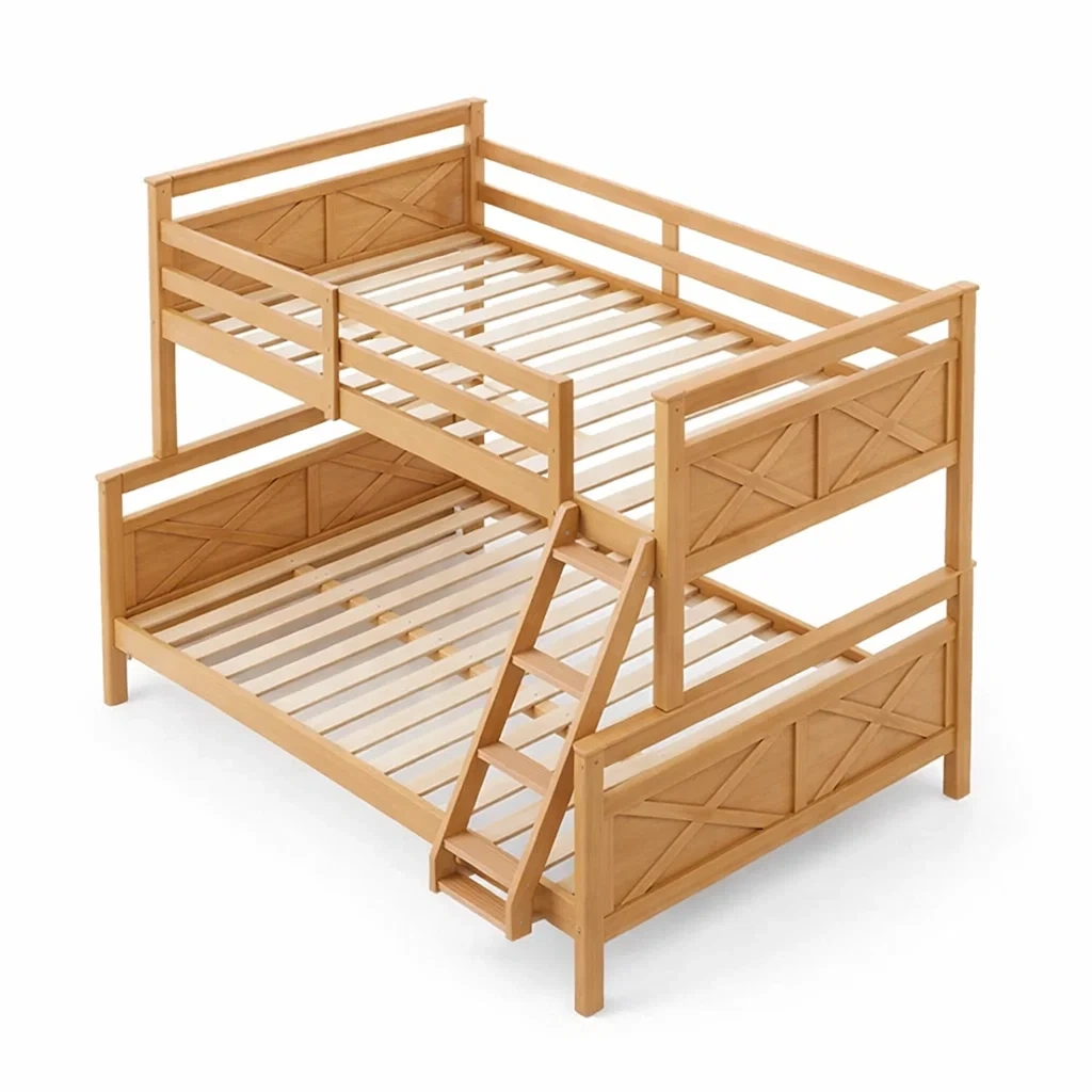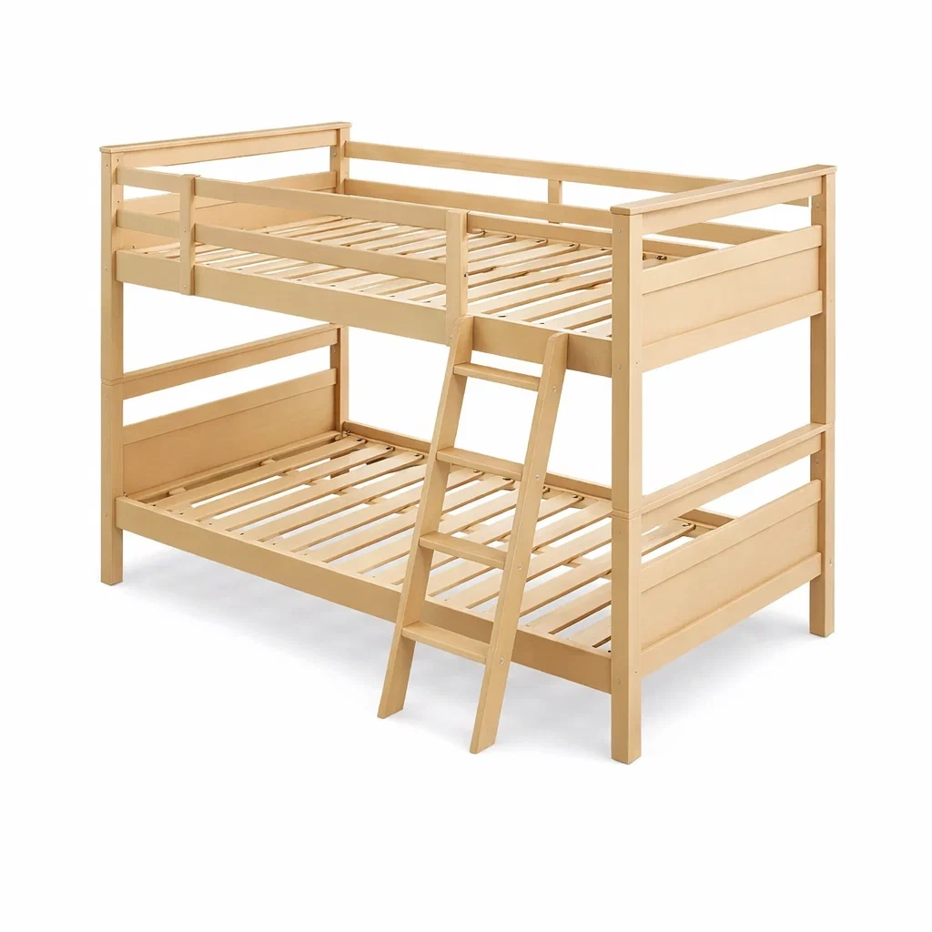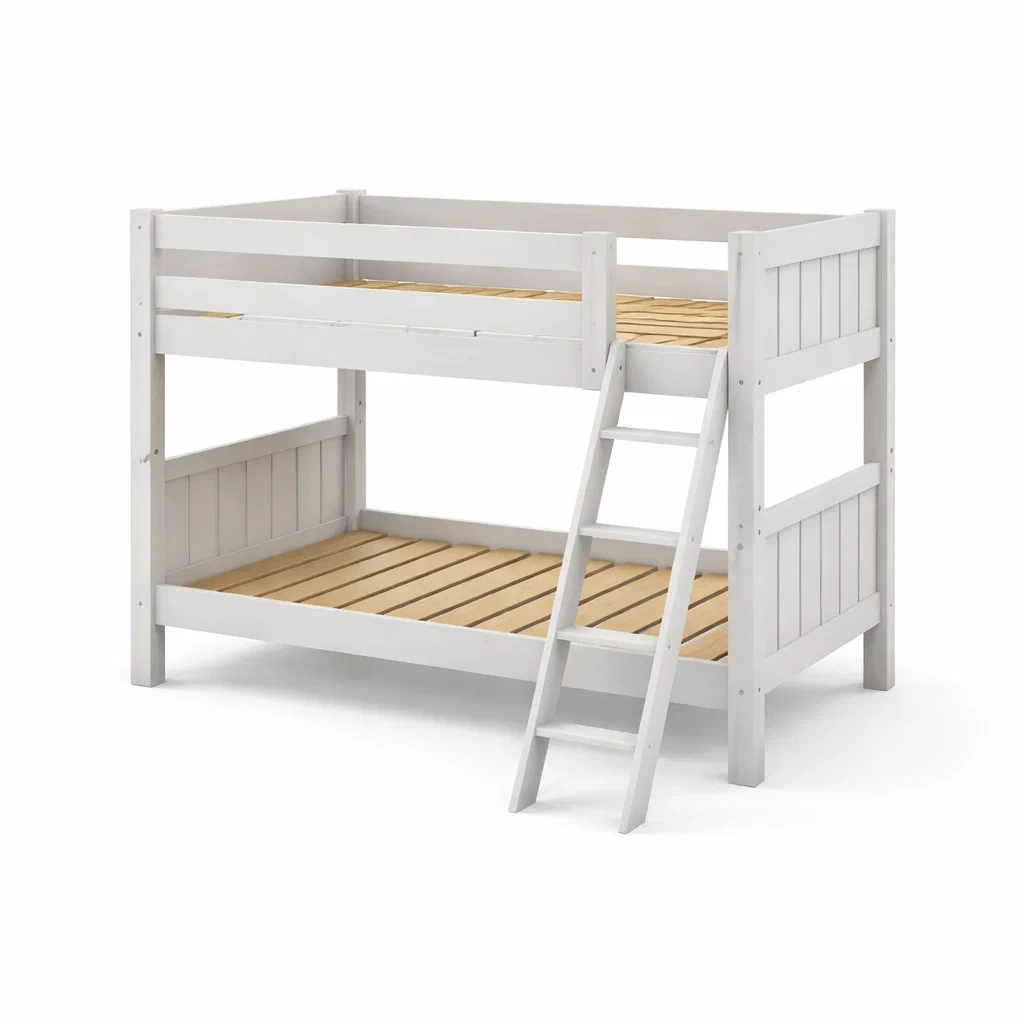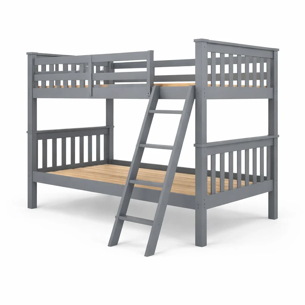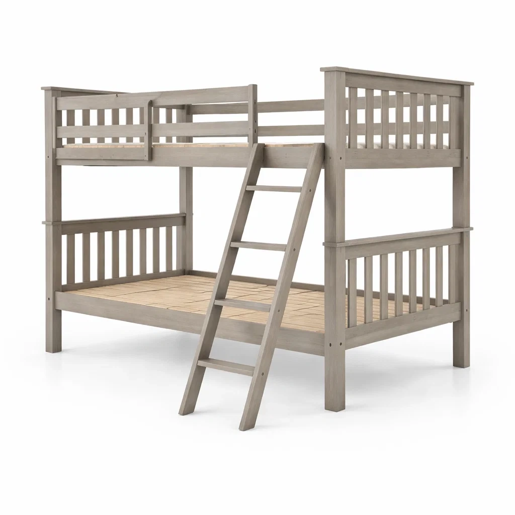 Lit superposé en bois d'hévéa avec échelle intégrée gris