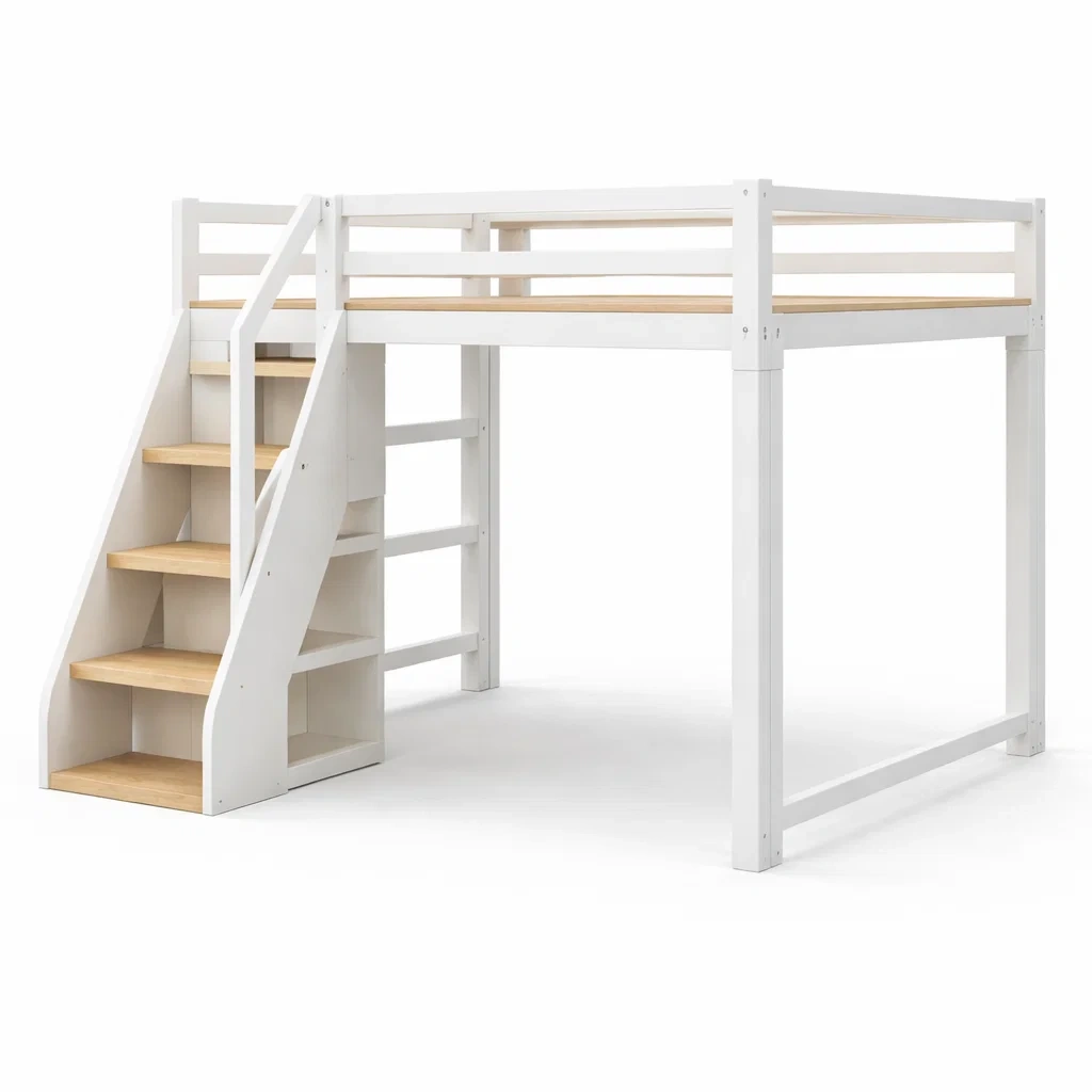 Matériau : Structure en bois de pin massif, marches et compartiments de rangement en MDF.